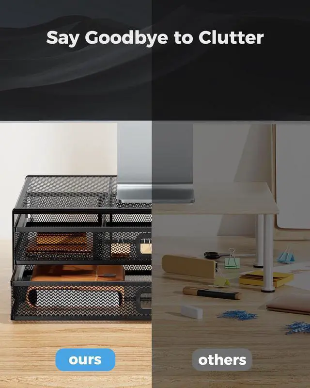 Sturdy Desk Stand with Strengthened Construction- The "H" shape construction increases the duration. This monitor stand easily hold monitors, printers up to 33lbs. Never worry about the drawer will not be easy to open.