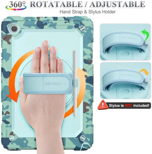 Rotating Hand Strap / Stand Provide the securest protection and more convenience when you play or work with Galaxy Tab A9 Plus. Its 360° Rotating Kickstand, can provides 30°-45°-60° viewing/drawing/video/typing angles. With soft handle strap, easier to use your tablet at home or outdoor working, studying, gaming for kids &adults