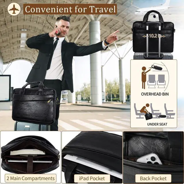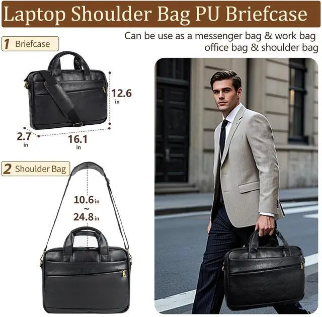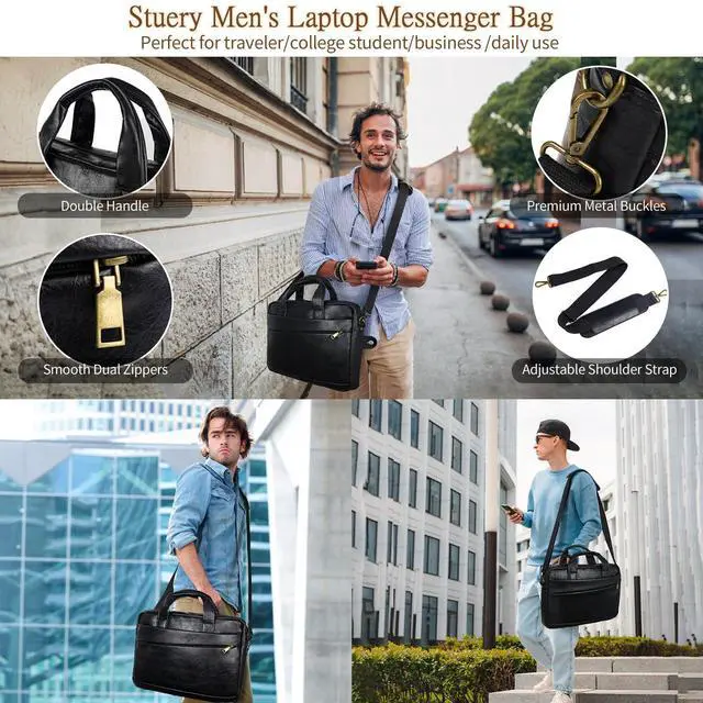 [15.6'' Messenger Bag ] Stuery computer shoulder bag is made of Premium PU leather, not just a computer bag, it can also be a briefcase for men, this handbag is particularly designed for people in business, office work and those who need to carry a laptop and other accessories. The luggage strap can be attached to suitcases, perfectly suitable for your trip
