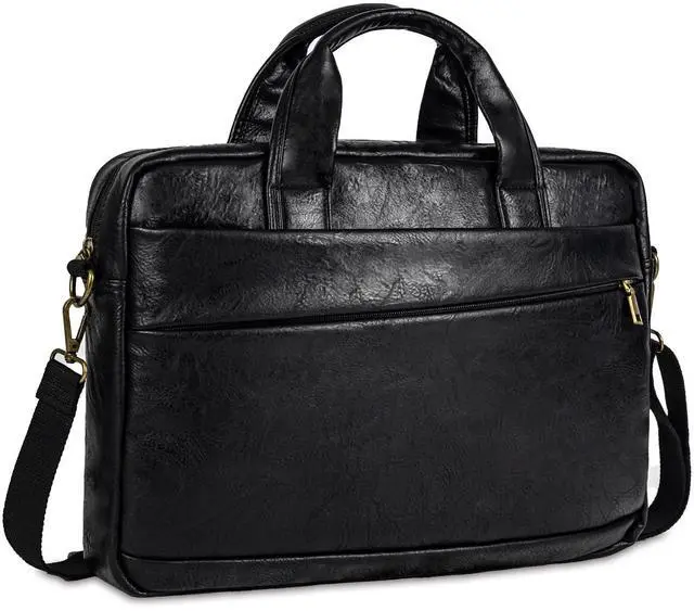 Faux Leather Messenger Bag for Men 15.6 Inch: Laptop Bag Briefcase Computer Handbags Shoulder Crossbody Bag with Padded Laptop Sleeve for Work College Travel, PU Black