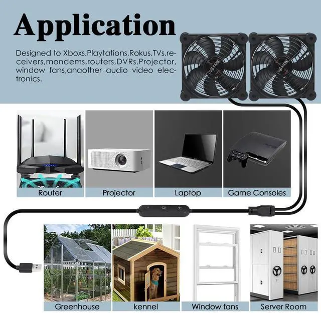 Xiaoqijia Dual 120mm Fan with 10 Speed USB 5V DC 12V IPX5 Waterproof Cooling Fan for Tablet TV Receiver Router DVR Xbox Greenhouse Kennel Computer Cabinet Component Cooling