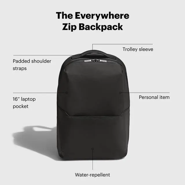 Away Everywhere Zip Backpack, Travel Backpack with Laptop Sleeve, Lightweight & Durable, Travel Essentials, Jet Black