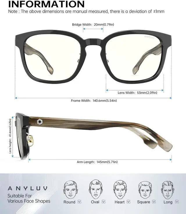 Trendy Blue Light Glasses: Designed with square frame and ANYLUV logo decor temple, very exquisite and fashion style. These anti blue light glasses help show a sophisticated look that complement any outfits, whether you're working or casual daily life.