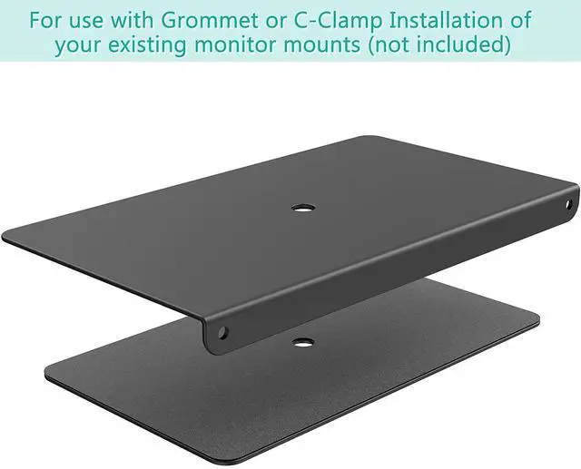 Compatibility: The 10.6 x 6 mounting plate is designed for Grommet or C-clamp installation on thin, wood, glass and other fragile desks. Fits most types of monitor mounts with Grommet or C-clamp install options on the market