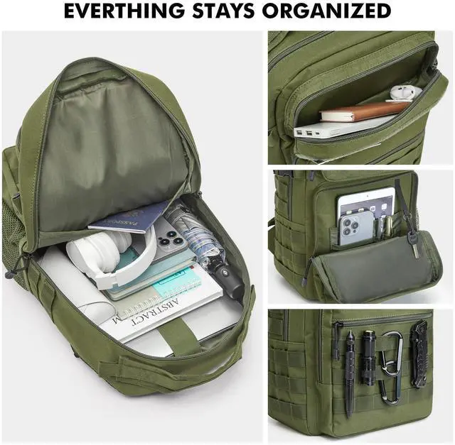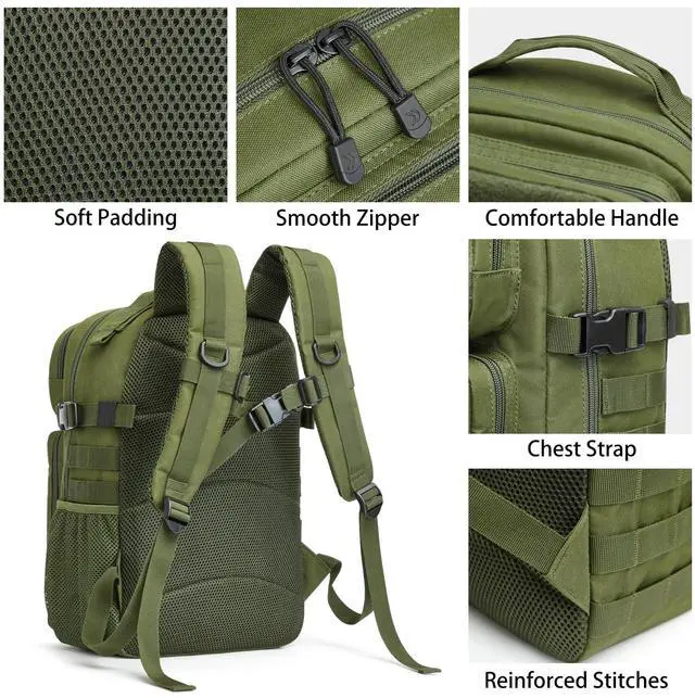 G4Free 25L Small Backpack Fits 15" Laptop, Tactical Work Back Pack Travel Bag for Men, Dark Green