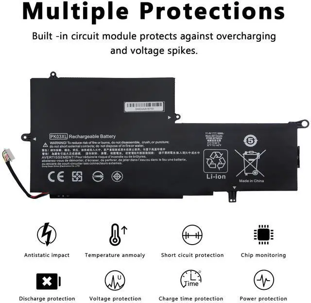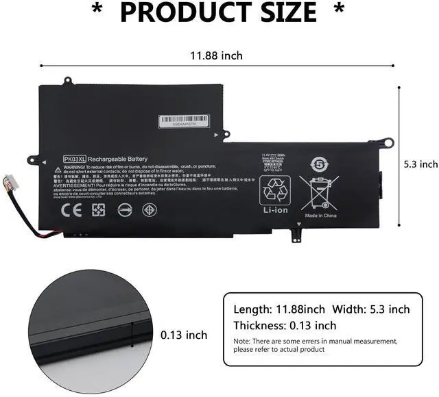 SpecificationVoltage:11.4V.Capacity: 56WH.Color: Black.Condition: 100% new from manufacturers.Package Includes:1x PK03XL HP Laptop,2 x Free Screwdrivers, and 2 x plastic sheets for HP Laptop Battery.If you have any questions or concerns,we will respond within 24*7 hours via emails and give you friendly after-sales service.