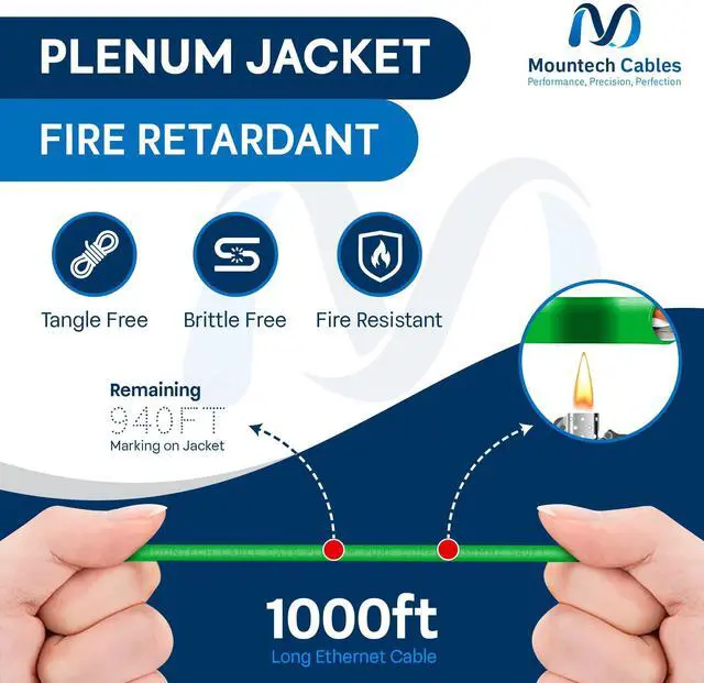 (/+/++) ( ): Cat6 plenum cable 1000ft is fully compatible with PoE (15.4W), PoE+ (30W), and PoE++ (up to 60 - 100W) power standards. It supports both data and power reliably over Et