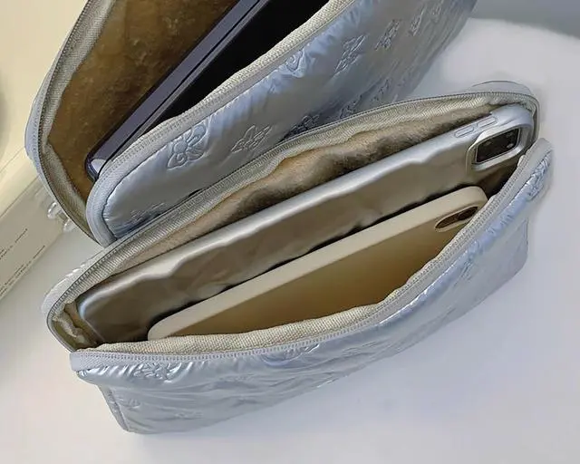 • QUALITY MATERIAL Quilted metallic nylon cover with fluffy fiber inner, a 2-way zip gliding smoothly and allows convenient access to your device. Slim and lightweight, does not bulk your device up and can easily slide into your briefcase, backpack or shoulder bag.