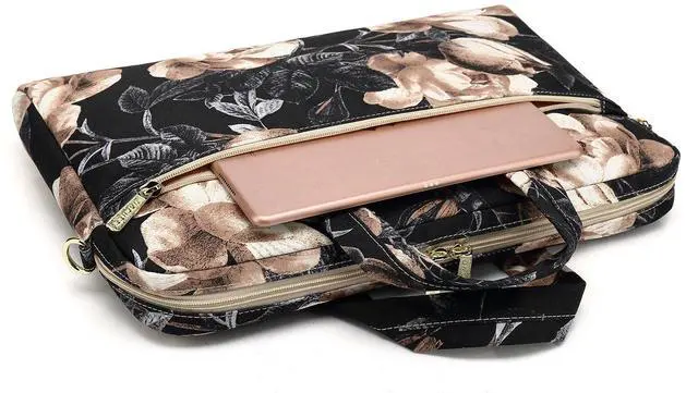 DACHEE Beige Rose Patten Waterproof Shoulder Messenger Bag Sleeve for 14 Inch 15 Inch Laptop Case Briefcase 15.6 Inch