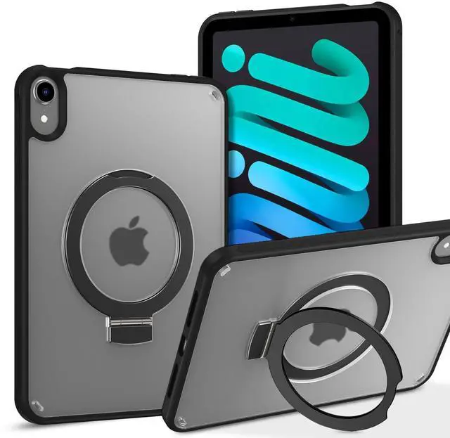 VENINGO iPad Mini 7 Case, iPad Mini 6 Case, iPad Mini Case 2024/2021, Slim Thin with Foldable Kickstand Ring Translucent Matte Back Not Yellow Anti-Scratch Shockproof Protective Tablet Cover, Black