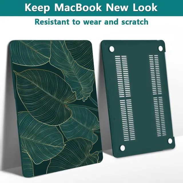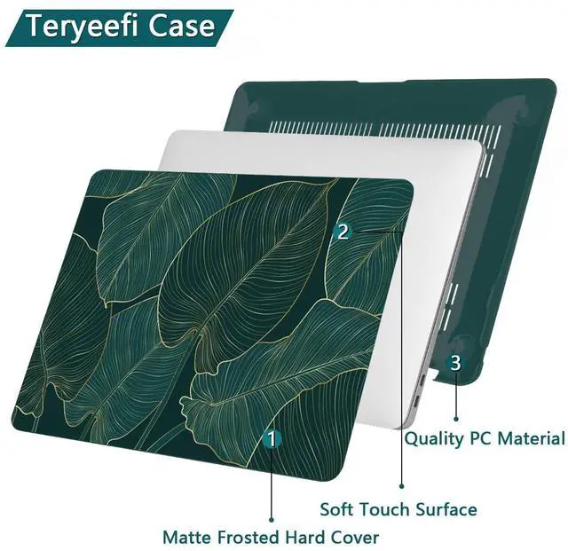 Teryeefi for MacBook Pro 13 inch Case M2 M1 2022 2020 2019-2016 Model A2338 A2289 A2251 A2159 A1989 A1706 with Touch Bar, Hard Shell Case & Keyboard Cover & Screen Protector, Green Leaf