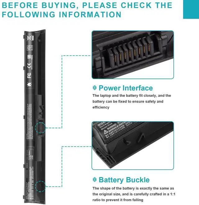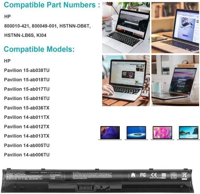 • Compatible P/N : HP PAVILION 800009-241, 800010-421, 800049-001, 800050-001, HSTNN-DB6T, HSTNN-LB6R, HSTNN-LB6S, K104, K1O4, KI04, KIO4, TPN-Q158, TPN-Q159, TPN-Q160, TPN-Q161, TPN-Q162