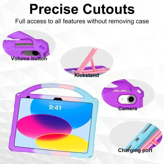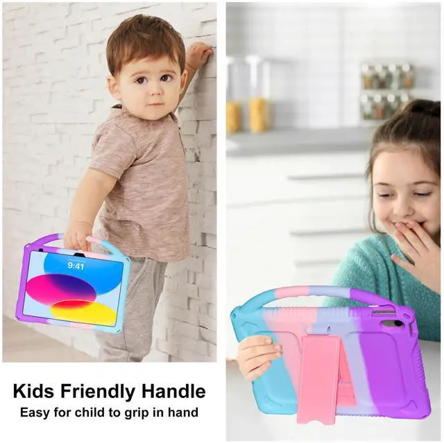 Built-in Kickstand Handle: Our ipad 10th Gen case come with non-slip handle and built in foldable kickstand,it makes your tablet with multi-angle watching,convenient for typing or watching movies,and super lightweight handle to make tablet easy carry around by children.