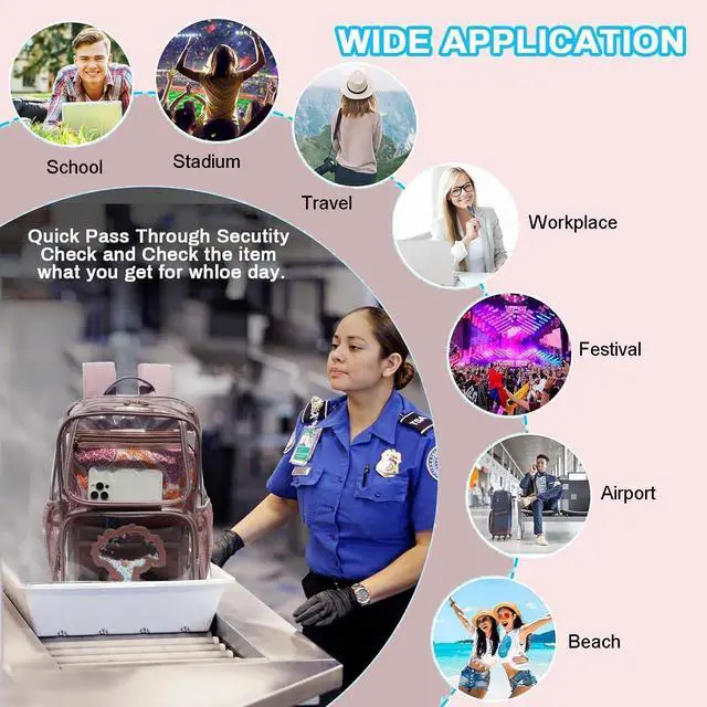 ESVAN Clear Backpack The ESVAN Clear Backpack is made for convenience while you on the go Works perfectly for Stadium, beach, travel, swimming, pool, gym, workers, sport events, concerts and so on. Constructed of Thick durable TPU, this is built to last.