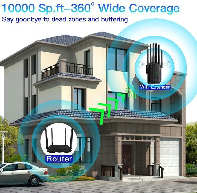 Superior Wall-Penetrating Capability: With 6 high-gain antennas, this WiFi extender provides a powerful, reliable signal that easily passes through walls and obstructions. It covers areas up to 10,000 sq. ft., eliminating dead zones and weak connections for seamless WiFi coverage in your home.
