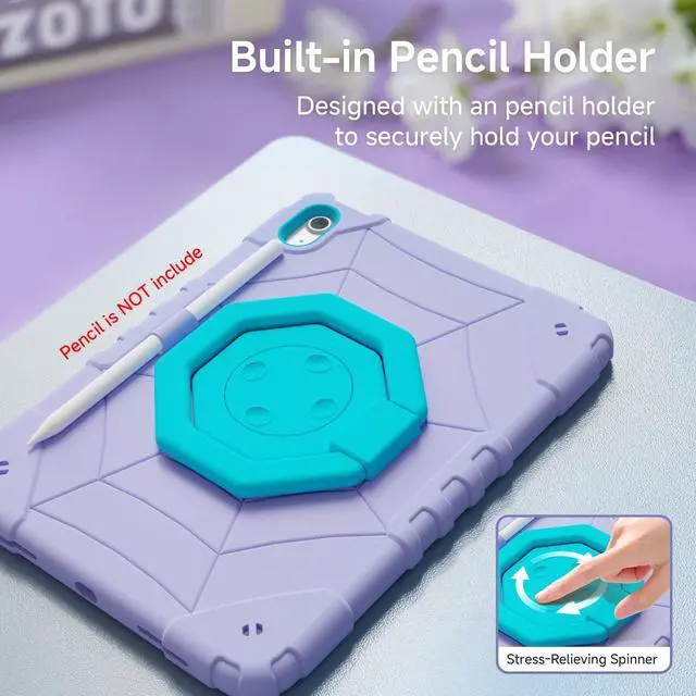 360° Rotating Stand Handle: The 360° rotating kickstand lets you position your ipad 10th generation in both horizontal and vertical angles for versatile viewing. It's stable and adjustable, perfect for activities like reading, typing, browsing, or video calls.This ipad 10th generation case features a built-in stress-relieving spinner for added relaxation and fun