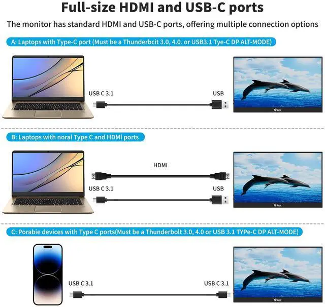 [10-Point Touchscreen Monitor] This Yinker 15.6'' Portable Monitor features with 10-point capacitive touch, enjoying a most responsive, accurate touch experience with your laptop or phones via full-featured Type-C interface. Plug and Play. No Driver Needed.