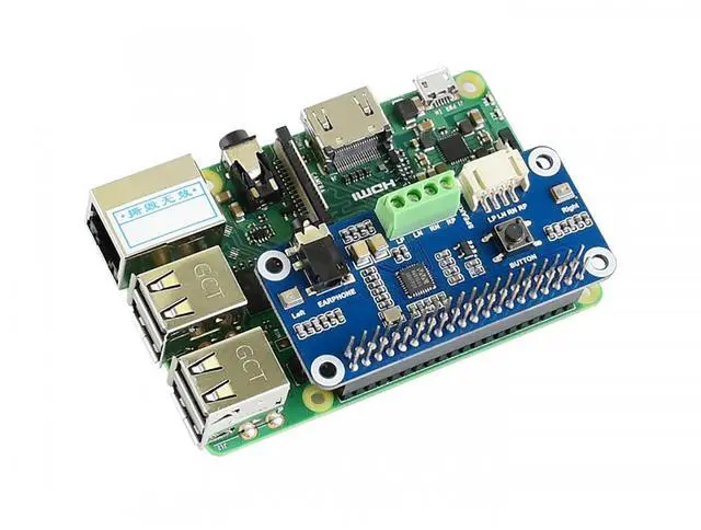 This is a sound card HAT designed for Raspberry Pi, low power consumption, supports stereo encoding / decoding, features Hi-Fi playing / recording, what's more, it can directly drive speakers to play music.