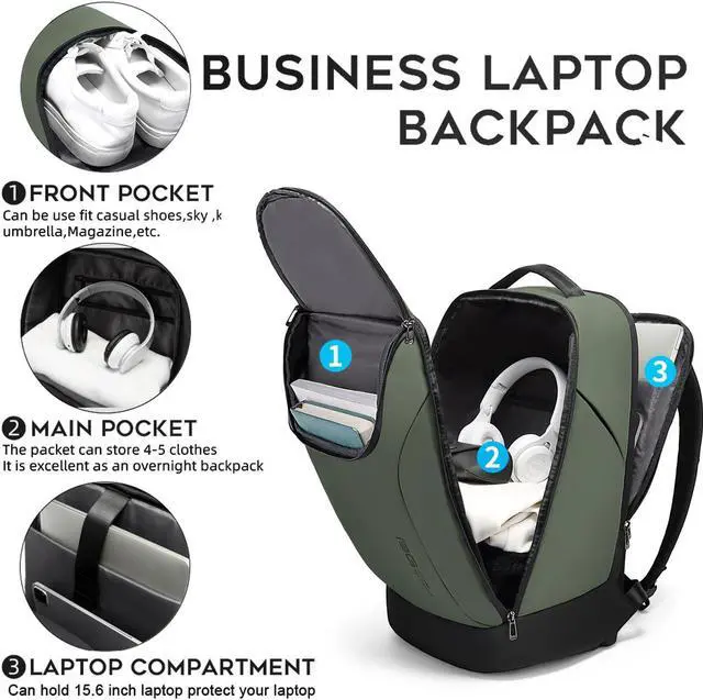 Multi-function pocketMultiple pocket designs180°opening pocketcan hold a lot of goodsin front pocketcan be use fit causal shoes,kettle umbrellamagazineetcIn main pocketpack the way you wantThe pocket can store 4-5 clothesit is excellent as an overnight backpackalso can used for business Travel and daily TravelIn laptop compartmentcan hold 15.6 inch laptop and protect your laptop