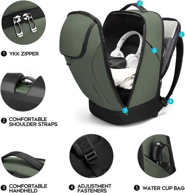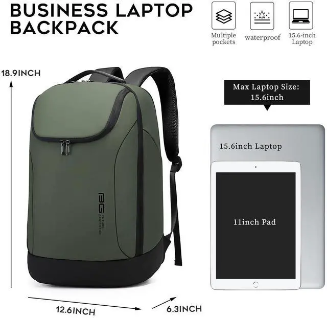 FUTURE AESTHETICS Business Smart Backpack Waterproof for women, men, Fight Approved Durable Backpack suitable as overnight and travel backpack (Green)