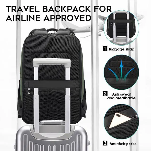 Durable designThe laptop backpack uses a more Durable Zipper, can more save your energy when you open and close, and hidden zipper pockets for additional anti theft protection on the back of the backpack,in side pocket,can hold umbrella,etc,Luggage strap design, luggage strap on the back to fix men work backpack on suitcase or luggagecan frees your hands,situatio
