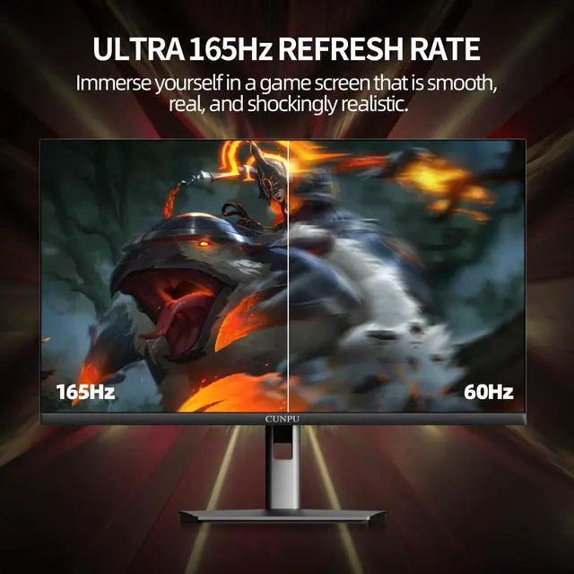 FASTER WITH EVERY MOVE: CUNPU 1440p 165Hz gaming monitors are compatible with both FreeSync and G-Sync technology. This ensures synchronized transfer rates between the graphics card and monitor, which eliminates screen tearing and latency. As a result, you can enjoy a smooth and stable gaming experience. Enjoy hours of gaming or video-watching without straining your eyes.