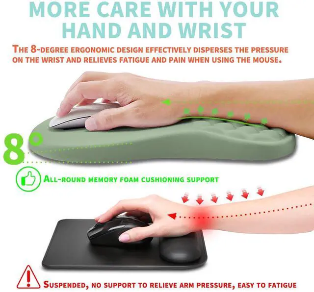 Wrist CareThe perfect combination of ergonomic 8-degree slope and massage bumps can effectively relieve wrist pain and fatigue, improve carpal tunnel syndrome (CTS), strengthen the air circulation between the wrist and the mouse pad, keep dry, Let your wrist be in the most comfortable state.
