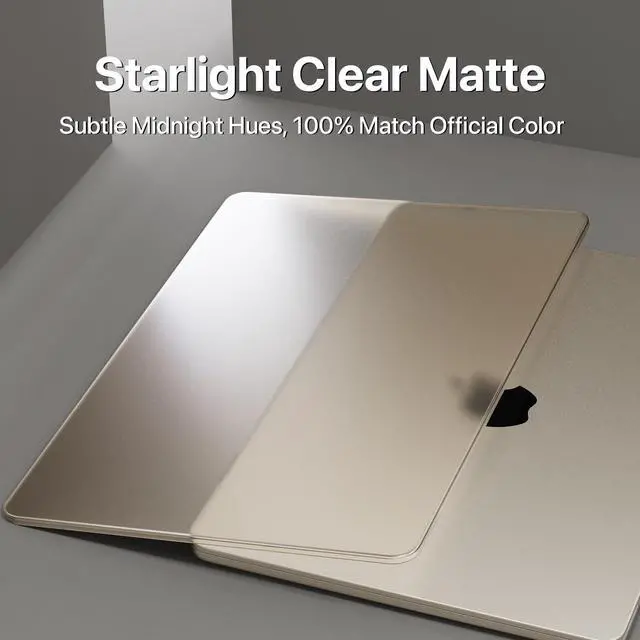 Genuine Starlight LookHigh-transparency matte finish + subtle Starlight tones, this Macbook air 15 inch Case perfectly aligns with your MacBooks aesthetic. The oil-resistant nano-coating reduces fingerprints and scratches, keeping it pristine