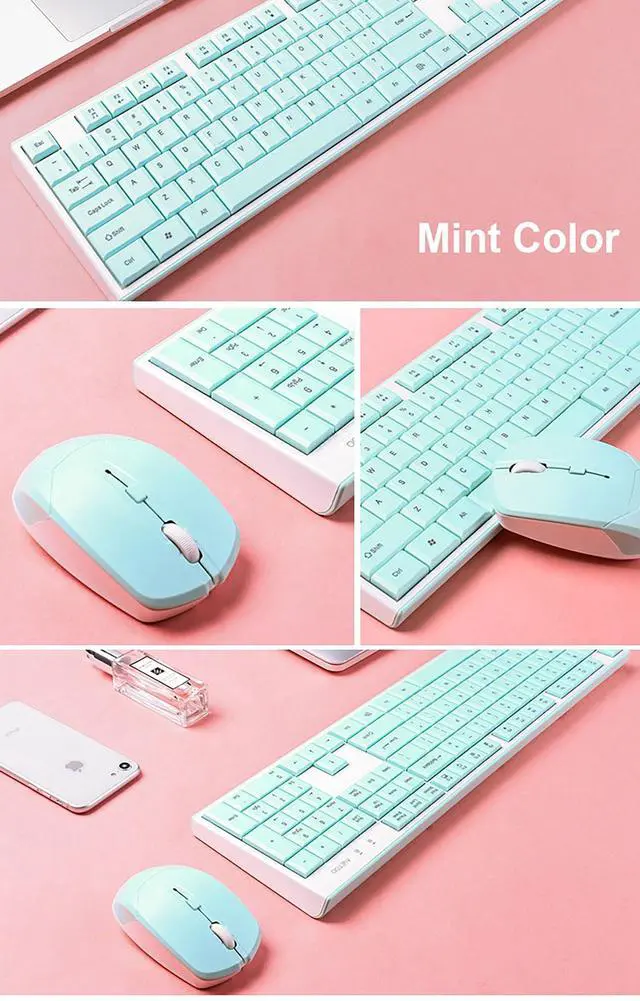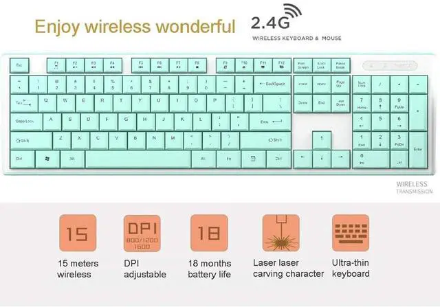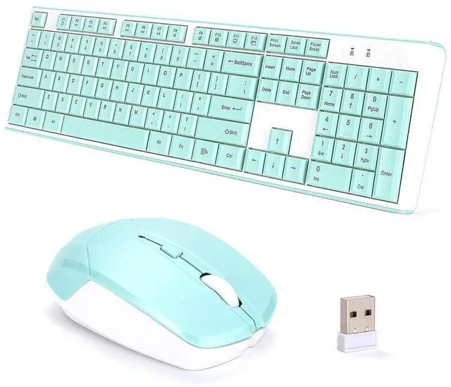 Green Keyboard and Mouse Set, 2.4G USB Wireless Connection Full-Sized Standard Keyboards and Silent Optical Mice for Study Office Use (1)
