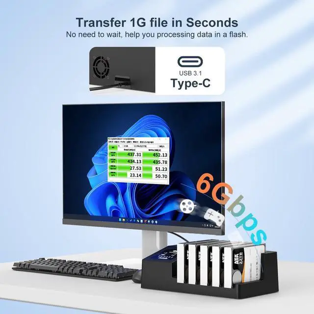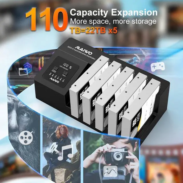 110TB Large Capacity & Compatible 2.5/3.5 inch HDD SSDThe HDD dock support up to 110TB storage capacity