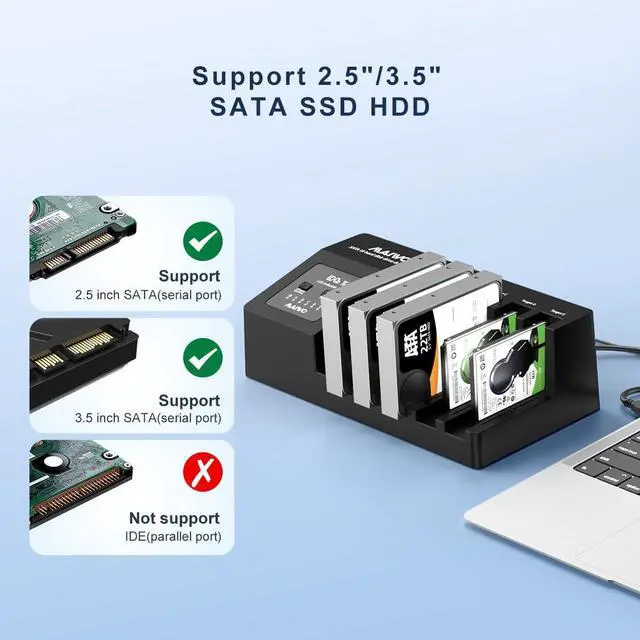 Supports Offline CloneThe external hard drive docking station can be used as offline duplicator from an source hard drive to target disks without connecting to a computer, or as external storage to transfer data between hard drives and your computer.