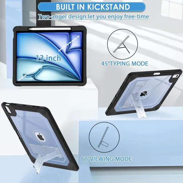 Shockproof Rugged Design- 2 In 1 structure of hybrid material back shell and hard front casing effectively protects your New iPad Air 6th 13 inch 2024 from scratches and accidental drops, bumps, and impacts.