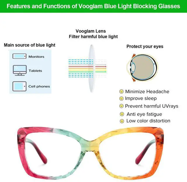 VOOGLAM Blue Light Glasses for Women Rectangle Gaming Glasses Anti Eyestrain Dry Eyes UV Computer Phone TV Eyewear Fashion Letitia Colorful GJGP797619-13 Trend