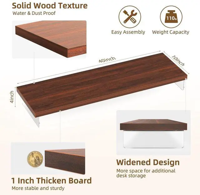 [Premium Durability] Computer monitor stand riser constructed with high-quality 1-inch solid wood and reinforced wood-acrylic hybrid structure, the stand supports up to 50kg/110lbs, making it 11% stronger than steel-embedded acrylic stands (45kg) and 42% sturdier than crystal-brick designs (35kg). Cross-jointed wood beams prevent warping, ensuring long-lasting stability.