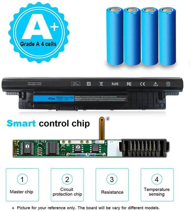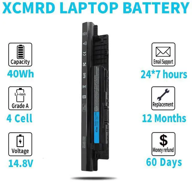 • SPECIFICATION : Model Name: 40Wh Standard Rechargeable Li-ion Battery Type XCMRD; Battery Type: Li-ion; Voltage : 14.8V; Capacity : 40Wh; Cells: 4-cell; Size(L*W*H): About 10.72x1.82x0.79inch. Weight: About 9oz / 0.56 lb;