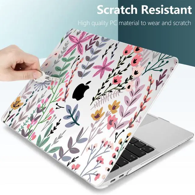 TWOLSKOO Transparent Tiny Flower Hard Shell Case and Silicone Keyboard Cover with Screen Protector for MacBook Air 13 inch 2021 2020 2019 2018 Release Model A2337 M1/A2179/A1932