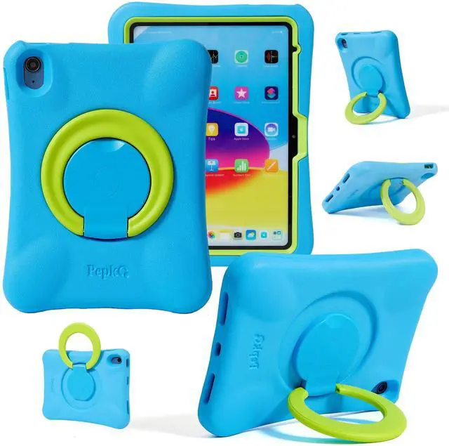 Design All For Kids/*Outstanding Ergonomic Design*/: Perfectly fit for the Kids little hands. The streamlined ring structure is used as a angle-adjustable stand and a carrying handle. /*Firm Mechanical Design*/: Sturdy to protect the iPad from all sides and angles. Ultra-thick stand & axle can sustain the heavy duty operations. /*Elaborative ID Design*/: All parts of the iPad function well in this case. /*Appealing Colour Combination*/: Most favored by all kids and parents.