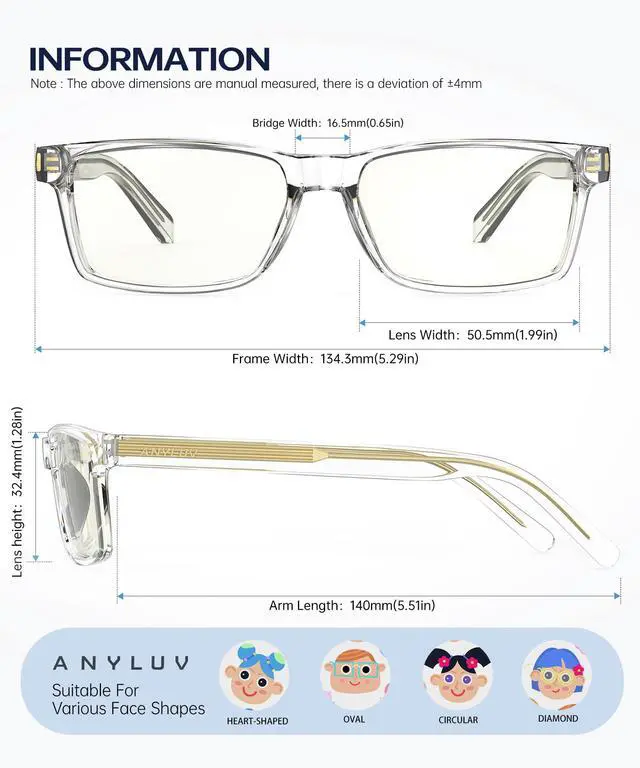 Advanced Eye Protection: ANYLUV blue light glasses for kids can effectively block harmful light from digital devices, reduce dry eyes and fatigue, and make learning more comfortable