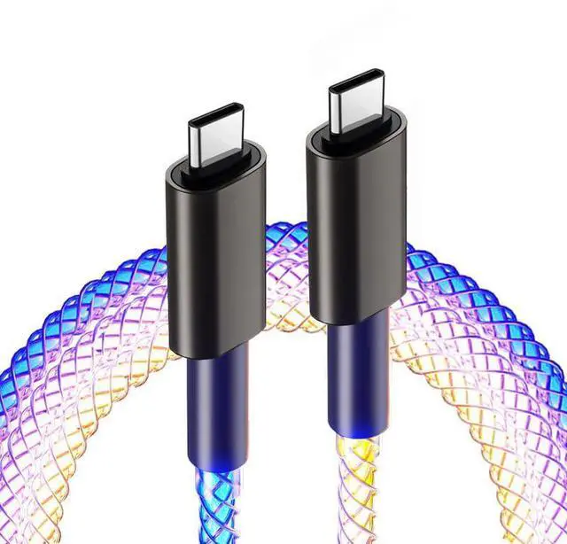 RGB Flowing LED Light UpRGB LED Glowing Gradual Colorful Light Up Flowing charging cable is compatible with Most Cell Phones port devices. New upgraded luminous design, when the LED usb c to type c cable is plugged into the PD/QC power adapter supply, the charger cable is like breathing by itself.