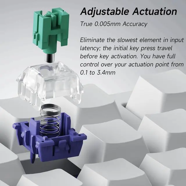 Rapid Trigger: Eliminate the second slowest element in input latency; return key press travel before key deactivation. Rapid Trigger dynamically changes the actuation and deactivation point. Your keys will activate when you intend to press them and deactivate when you intend to let go
