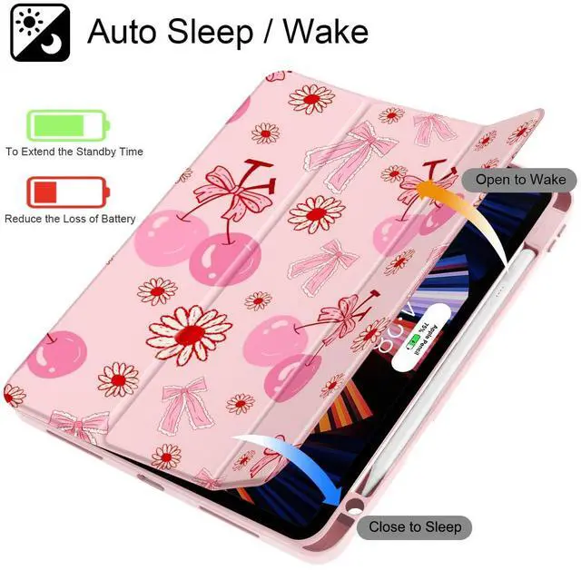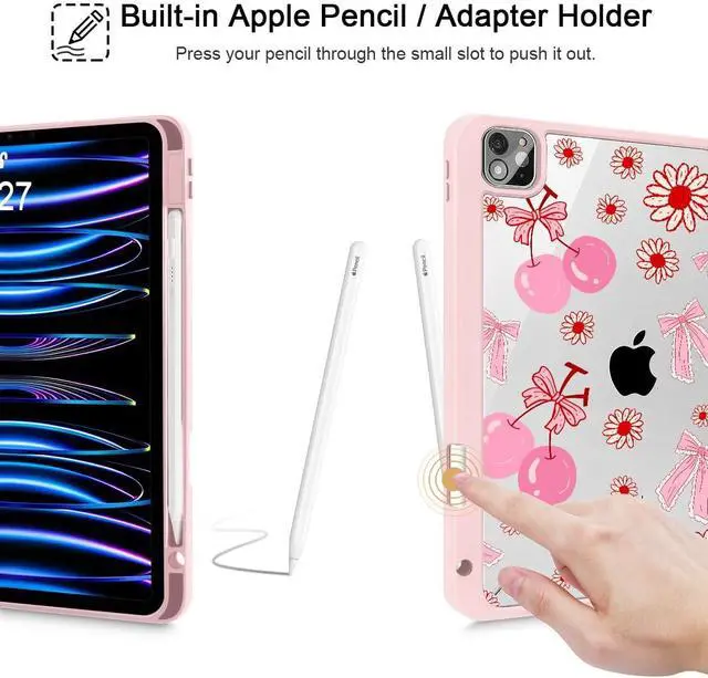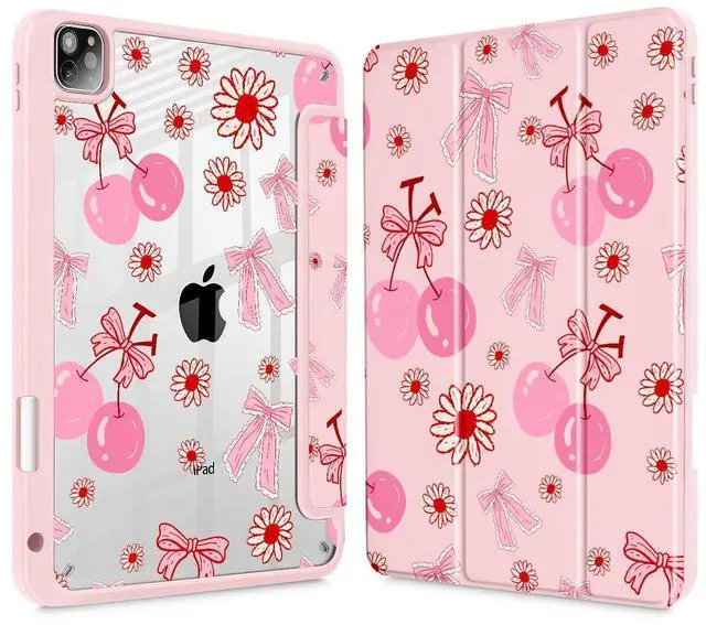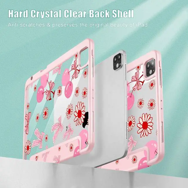 Lepeoac Case for iPad Pro 11 inch (4th, 3rd, 2nd & 1st Gen) 2022 2021 2020 2018, Buit in Pencil Holder with Shockproof Cover Clear Shell + Auto Wake/Sleep, Cherry Bow P705