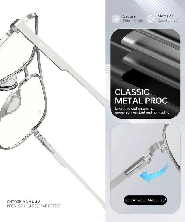 LIGHTTWEIGHT & All-Day COMFORT:ANYLUV's blue light glasses are made of lightweight materials, Features featherlight metal arms (under 25g) and a seamless nose pad designed to eliminate pressure points. Forget sore ears or nose bridgeswear these glasses comfortably for 12+ hours.