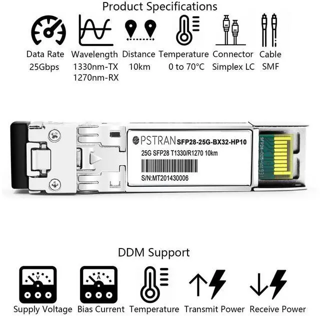 the OPSTRAN SFP28 transceiver provides 25GBase-BX throughput up to 10km over single mode fiber (SMF) using a wavelength of 1330nm-TX/1270nm-RX via an LC simplex connector. This bidirectional unit must be used with another transceiver or network appliance of complimenting wavelengths. It provides 25GBASE Ethernet connectivity option for 25G Ethernet, telecom and data center. It is fully compliant with the SFP28 MSA, CPRI and eCPRI standard.