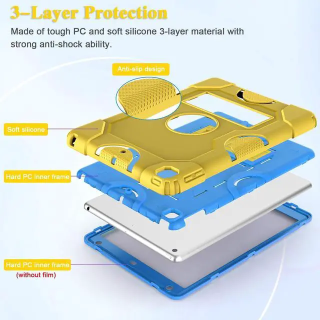Shockproof Rugged Design: iPad 10.2 Case made of durable Hard PC+Silicone, 3-layer Full Body protection structure, provide a perfect protection, protects your iPad 9th/ 8th/ 7th Generation from scratches and accidental drops, bumps and impacts