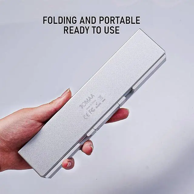 JOMAA Mini Foldable Bluetooth Keyboard Silent, Rechargeable, Aluminum Alloy Housing and Portable Folding Travel Keyboard for Phone ipad Tablet (Silver)