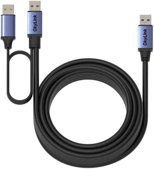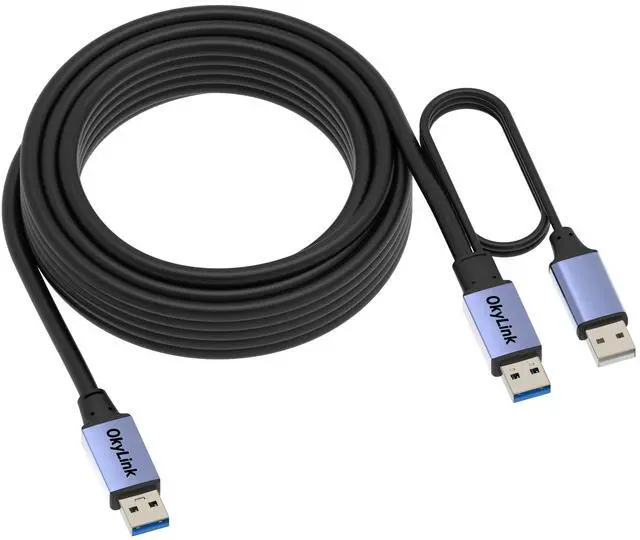 OkyLink 32ft (10M) Active USB 3.0 / 3.2 Gen 1 Data Cable A Male to A Male with Optional Power Cable & Repeater 5Gbps for Long Distance Data Transfer