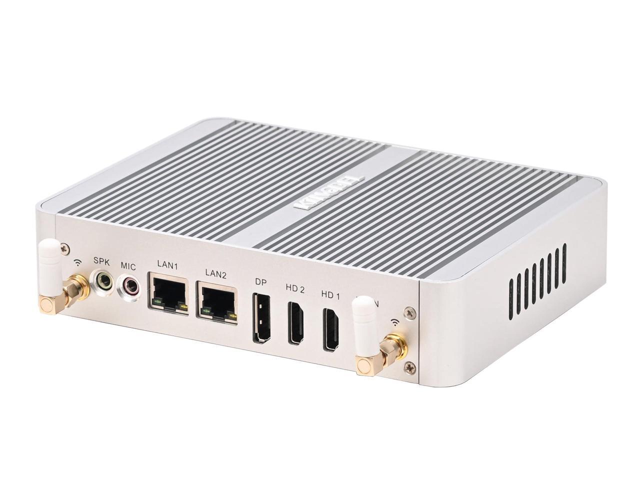 KINGDEL Fanless Mini Desktop Computer with 12th Gen. CPU N100(4C/4T, up to 3.4Ghz), 8GB DDR4 RAM+512GB NVMe SSD, 2xHD+DP, 2xNICs, 4K:4096x2160, WiFi+BT, Silent Working