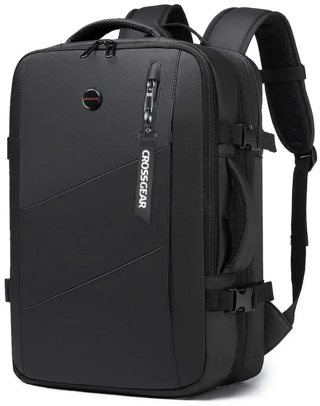 CROSSGEAR Expandable 25L-35L Travel Backpack,Weekender Carry-On Backpack for Airplanes,Water Resistant 17.3 Inch Laptop Backpack with USB Charging Port for Men - Black