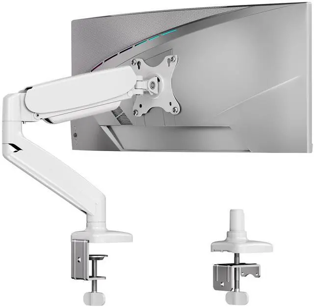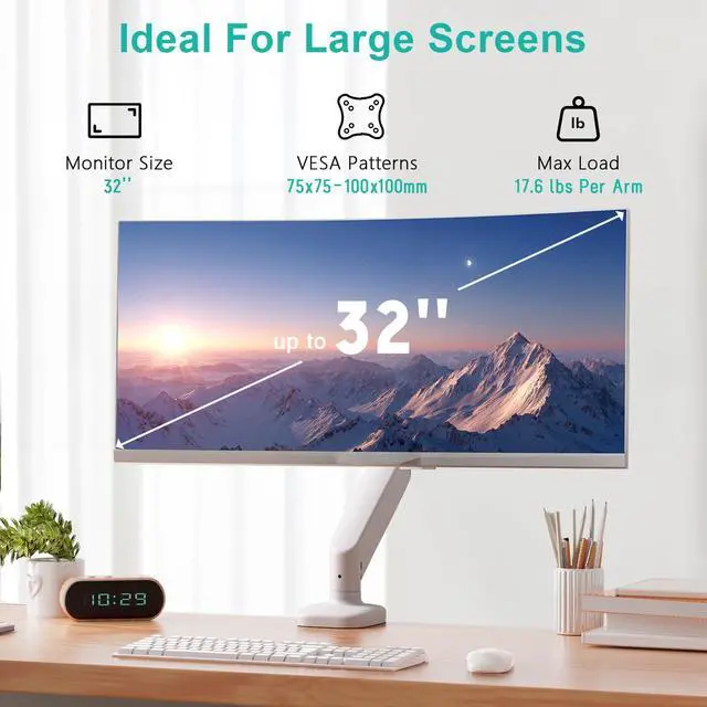 Universal Single Monitor Arm The gas spring monitor arm is designed to most under 32 inch flat or curved monitors, holding 4.4 - 17.6 lbs screens. With VESA patterns 75x75mm and 100x100mm, compatible with Samsung, ASUS, Acer, LG, HP, AOC, Dell, Sceptre, etc. It is perfect for anyone seeking a sturdy and reliable full motion monitor mount for workspace.