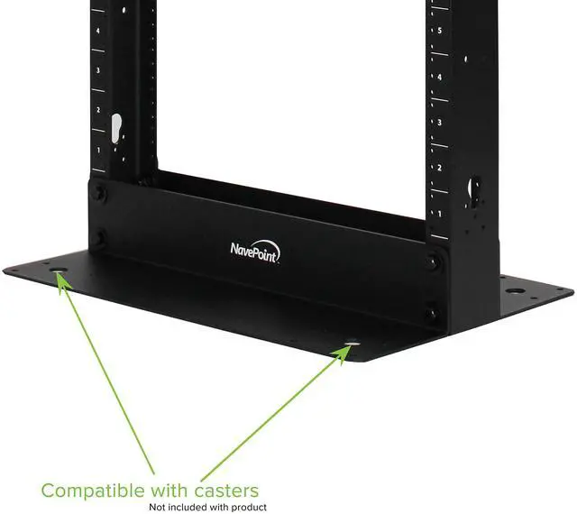 DURABLE 45U 2 POST SERVER RACK - Constructed from high-quality aluminum with a black powder-coated finish, this NavePoint 45U 2-post rack supports up to 661 lbs making it ideal for mounting substantial IT hardware. Dimensions: 13.4"L x 20.25"W x 84"H. This rack is designed for compatibility with 19 standard equipment.